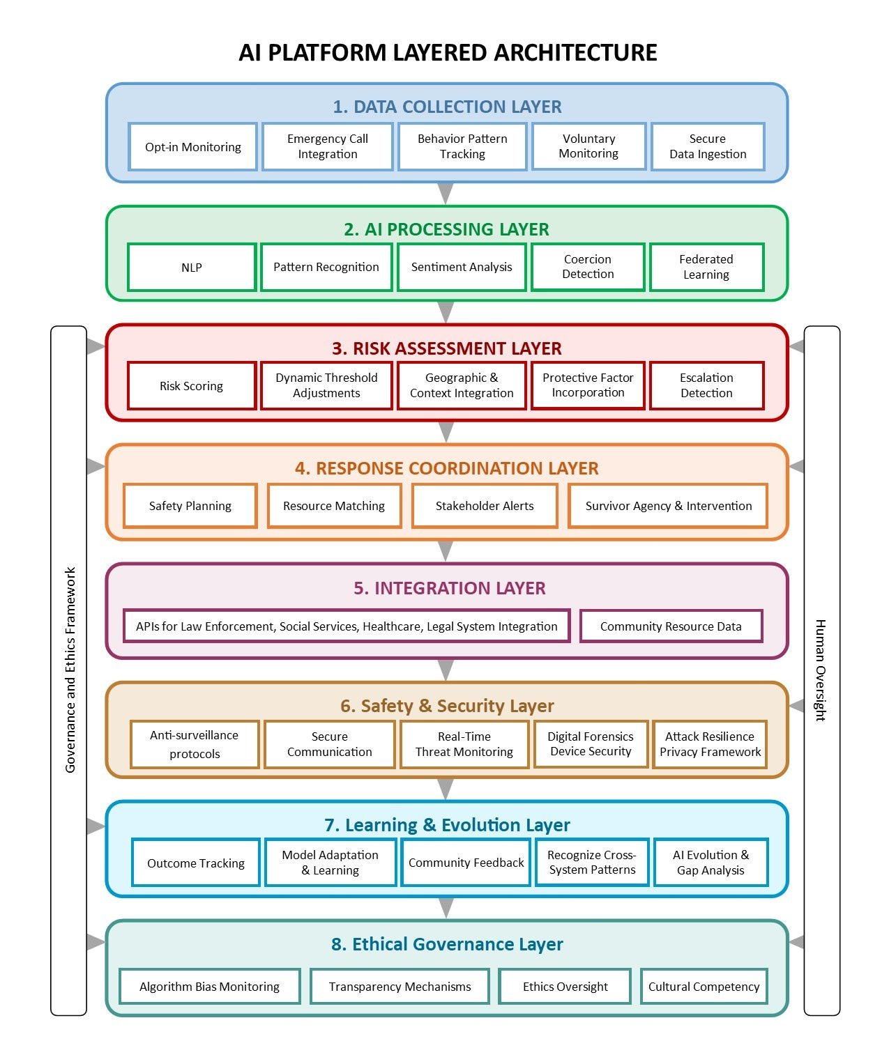 As described in the two-chapter hypothetical story on our Home page, AI could contribute to domestic violence remediation with technology that recognizes patterns of abuse before they escalate to critical levels. A well architected, configurable, and highly performing AI platform could serve as an early warning system that connects vulnerable individuals with resources and support networks when they need them the most. Chapter 3, Parts 1, 2, and 3 will lay out the strategy upon which to build the architecture for this complex, sensitive system.