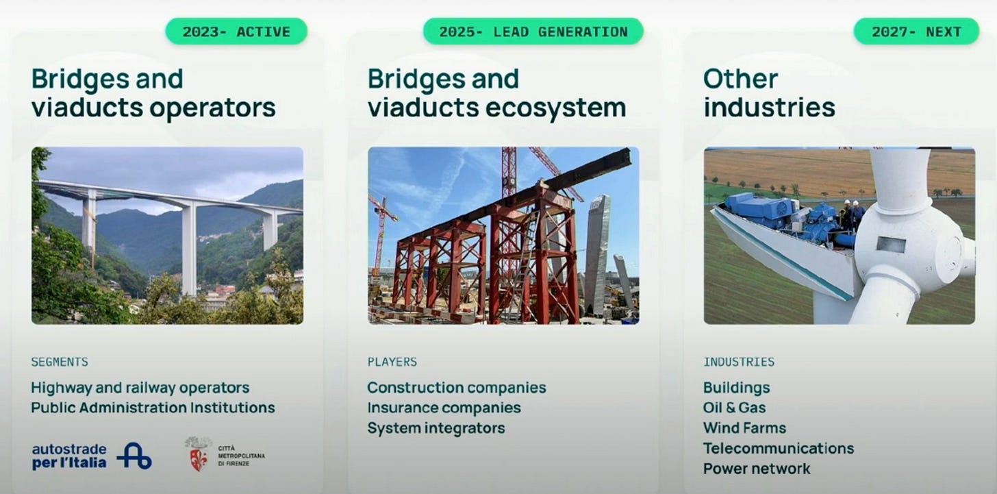 Beyond bridges, their goals for growth include the sectors displayed in this still grabbed from their video at 4:50.